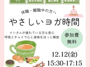 【イベント案内】メンタル不調で休職・離職中の方へ /やさしいヨガ時間