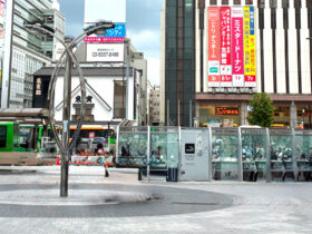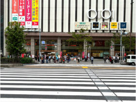 南口広場に出て、マルイの前の交差点を渡ります。 -