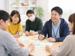 メンバーとの意見交換を通して、それぞれの価値観の違いを知り、互いの意見を尊重しながら合意形成(コンセンサス)を目指す体験を通して、円滑なコミュニケーションの取り方を学びます。