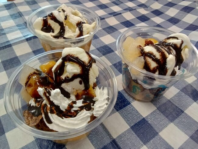 各々スポンジからフレーク、アイスなどをトッピングしオリジナルのパフェを作っていただきました✨