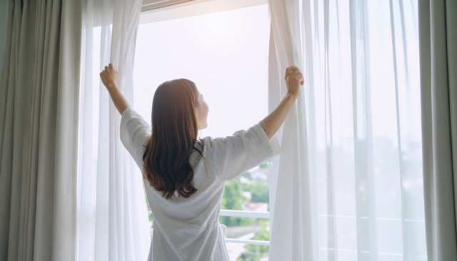 たとえ夜更かしをしてしまっても、朝は決まった時間にカーテンを開けて日光を浴びましょう。