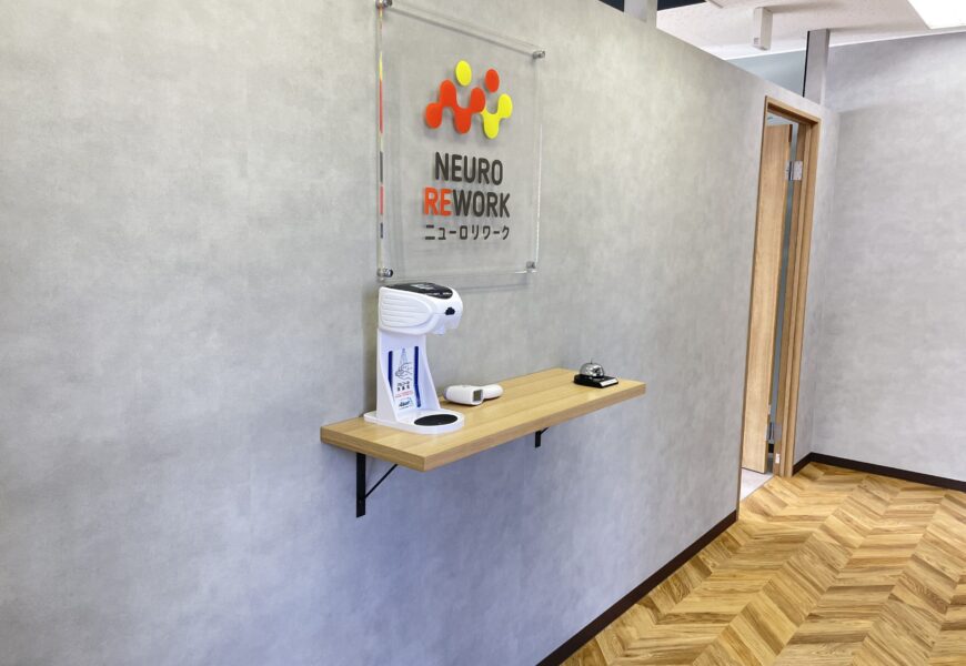 「航空公園西口第一武井ビル」の2階へ上ります。ニューロリワークの看板があるドアをお入りください。スタッフ一同お待ちしております。