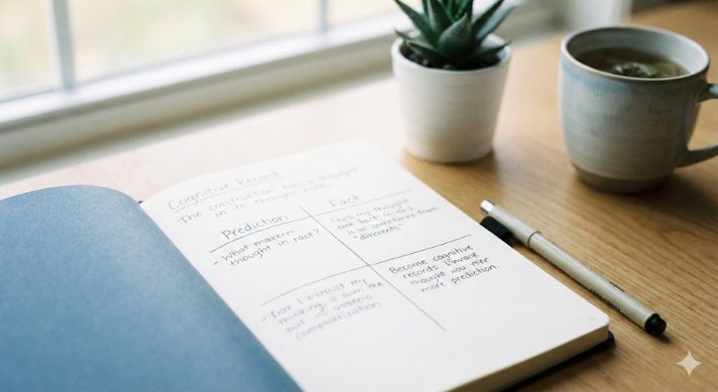 浮かんだ考えを書き出し、事実と予測を分けながら、物事を一つの見方だけで決めつけないための整理方法です。