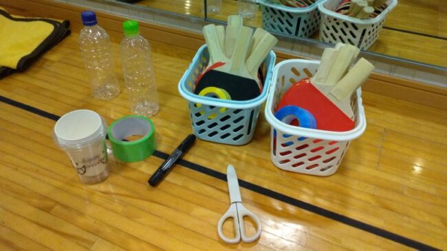そのほか、卓球のラケットを使いコーンを回る玉運びの競争、ペットボトルを使った1ピンのみのボーリングなどバラエティ豊かな種目も行いました。