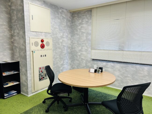 個別で相談をしたい、誰にも聞かれたくない話を共有したいときは、プライバシーが守られた面談室の利用も可能です。