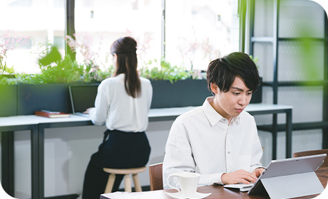 人前で食事をするのは苦手ですが、ニューロリワークでは個別席があるので、落ち着いた環境で食事ができます。 -