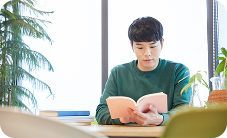 ランチを食べた後は、センターにある書籍を借りて読書をしています。